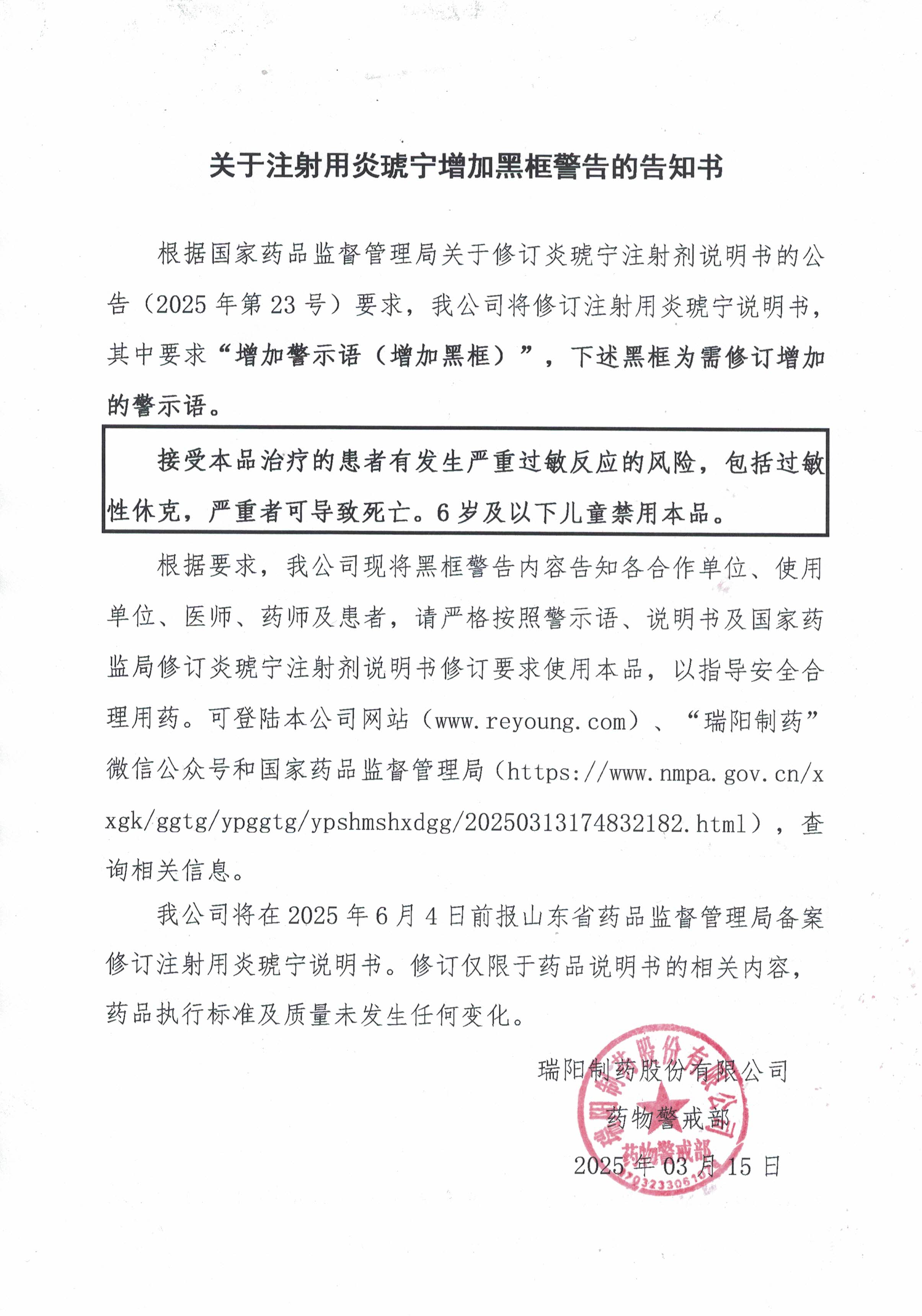 關于注射用炎琥寧增加黑框警告的告知書.jpg